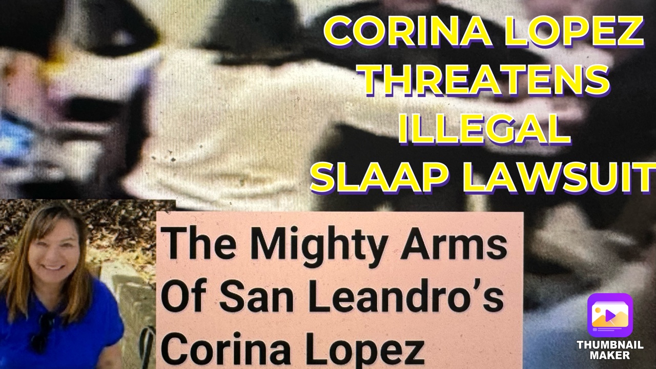 Corina Lopez is mad at me, Zennie62Media, Inc. CEO and Oakland Vlogger Zennie Abraham, and landed a lawyer to try and remove my expressed opinion of her actions against other San Leandro public officials. Via a Newport Beach, California lawyer (no San Leandro lawyers?) named Elisa Guadan, the former San Leandro Councilmember is threatening what’s called a “Strategic Lawsuit Against Public Participation” or “SLAPP” lawsuit against me, but not against Zennie62Media, Inc., got that? Trouble is, both former Councilmember Lopez and her lawyer have made critical mistakes that damage the credibility of their SLAPP threat. Aside from the fact that “SLAPP” lawsuits are illegal in California, and have been since 1992.