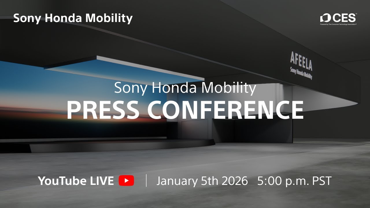 Join us for the Sony Honda Mobility Press Conference at CES® 2026, streaming live from Las Vegas. During the conference, we will share the latest updates on our first model, AFEELA 1, now presented as a pre-production model, and unveil an all-new concept model. Currently available to reserve, AFEELA 1 will begin deliveries to California customers in 2026. For the version with ASL interpretation, please visit this page : http://spr.ly/6009Ciq5f■Event Time January 5 (Mon.), 5:00–5:30 PM (Las Vegas Local Time) January 6 (Tue.), 10:00–10:30 AM (Japan Time)