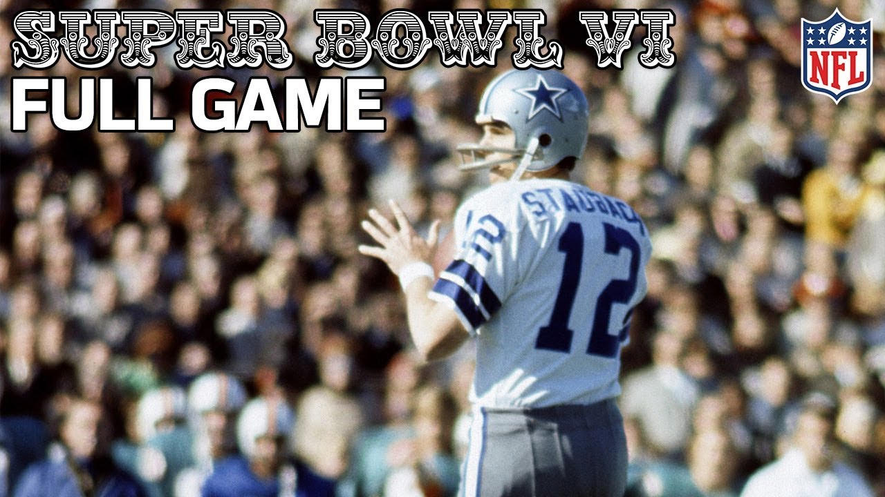 The NFL presents Super Bowl VI: The Cowboys capture their first Super Bowl.9:10 L. Csonka fumbles, recovered by C. Howley13:23 R. Staubach sacked for -13-yards17:56 B. Griese sacked for -29 yards43:15 R. Staubach 7-yard TD pass to L. Alworth53:24 D. Thomas 23-yard run55:54 D. Thomas 3-yard TD run1:12:39 B. Griese intercepted by C. Howley1:15:32 R. Staubach 7-yard TD pass to M. Ditka1:21:26 B. Griese fumbles, recovered by L. Cole1:31:03 C. Hill fumbles, recovered by M. FernandezDallas entered Super Bowl Six coming off a tough three-point loss the season before. This time Cowboys were not going let it get close dominating from start to finish, earning the franchise’s first-ever Super Bowl victory.Subscribe to NFL: http://j.mp/1L0bVBuThe NFL YouTube channel is your home for immediate in-game highlights from your favorite teams and players, full NFL games, behind the scenes access, up-to-the-minute analysis and more!Check out our other channels: NFL Network http://www.youtube.com/nflnetwork NFL Films http://www.youtube.com/nflfilmsFor all things NFL, visit the league’s official website at http://www.nfl.com/Start your free trial of NFL Game Pass: https://ift.tt/GeENpqA Fantasy Football: https://ift.tt/5tKqfca Watch NFL Now: https://www.nfl.com/now Listen to NFL podcasts: https://ift.tt/SdByXuM Watch the NFL network: https://ift.tt/lRXskrI Download the NFL mobile app: https://ift.tt/QODU9SG 2016 NFL Schedule: https://ift.tt/ViI7XE9 Buy tickets to watch your favorite team: https://ift.tt/oWXj5mE Shop NFL: https://ift.tt/EKxJ7MHLike us on Facebook: https://ift.tt/cYq25Vv Follow us on Twitter: https://twitter.com/NFL Follow us on Instagram: https://ift.tt/8VuiqGs